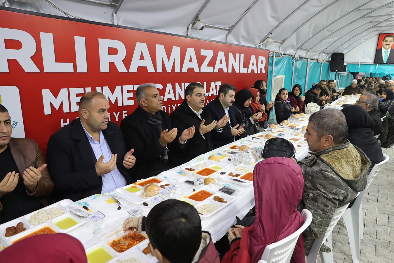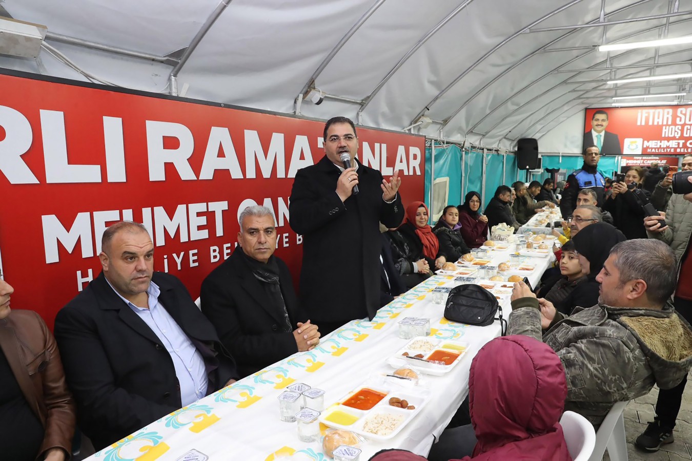 Haliliye Belediyesinin Necmettin Cevheri Parkı’nda kurduğu iftar çadırında, Ramazan ayının son gününde düzenlenen programa Başkan Mehmet Canpolat ve TBMM İdare Amiri ve AK Parti Şanlıurfa Milletvekili İbrahim Eyyüpoğlu katıldı. Vatandaşlarla birlikte oruç açılan programda birlik ve beraberlik mesajları verildi.